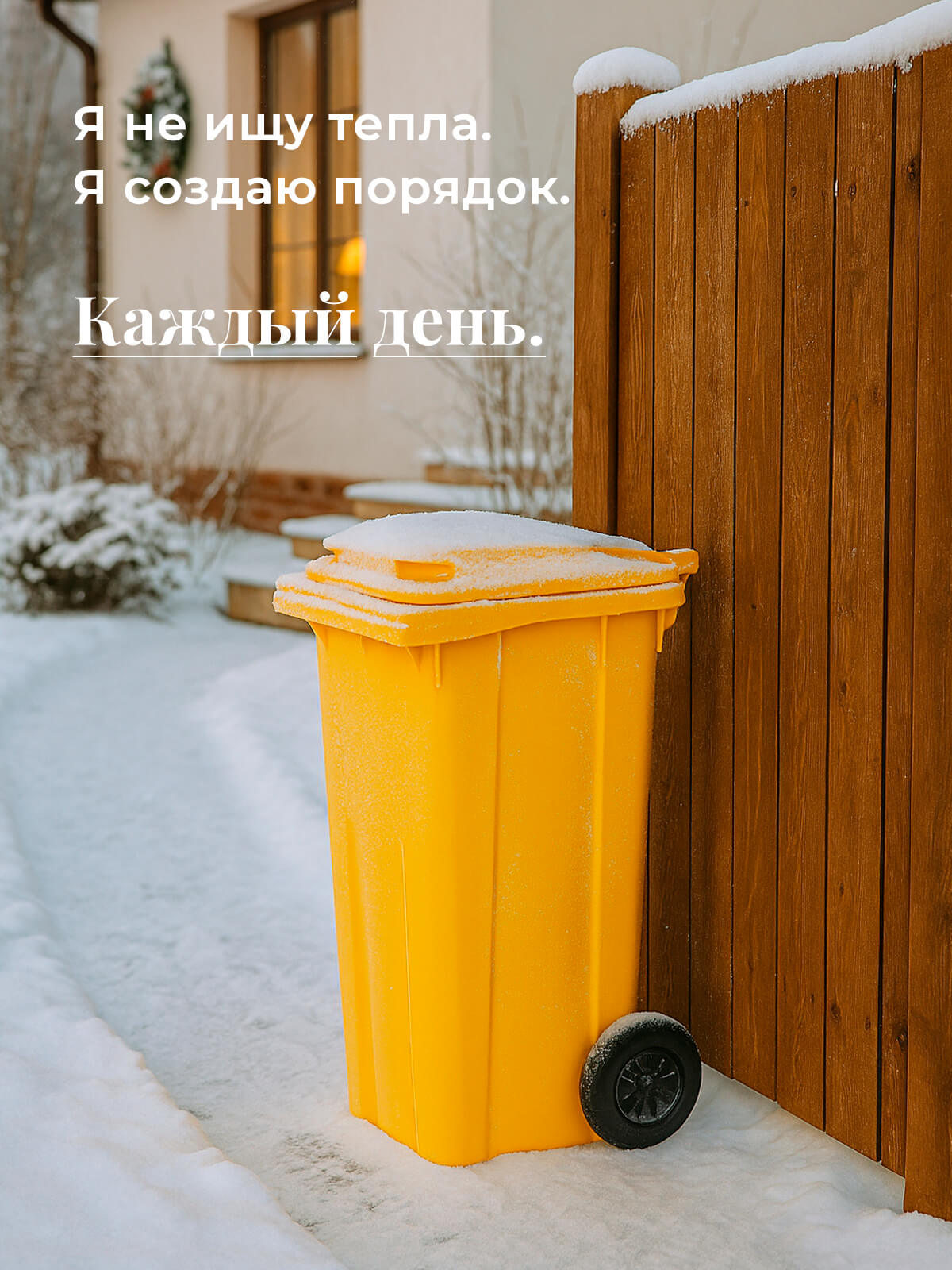 Благодаря прочным колёсам контейнер легко перемещается по любой поверхности. Корпус из первичного ПНД выдерживает морозы, удары и воздействие ультрафиолета, а плотная крышка надёжно удерживает запахи и защищает от осадков.